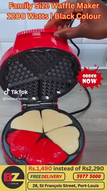 Make 5 golden heart-shaped waffles in minutes — for the whole family.